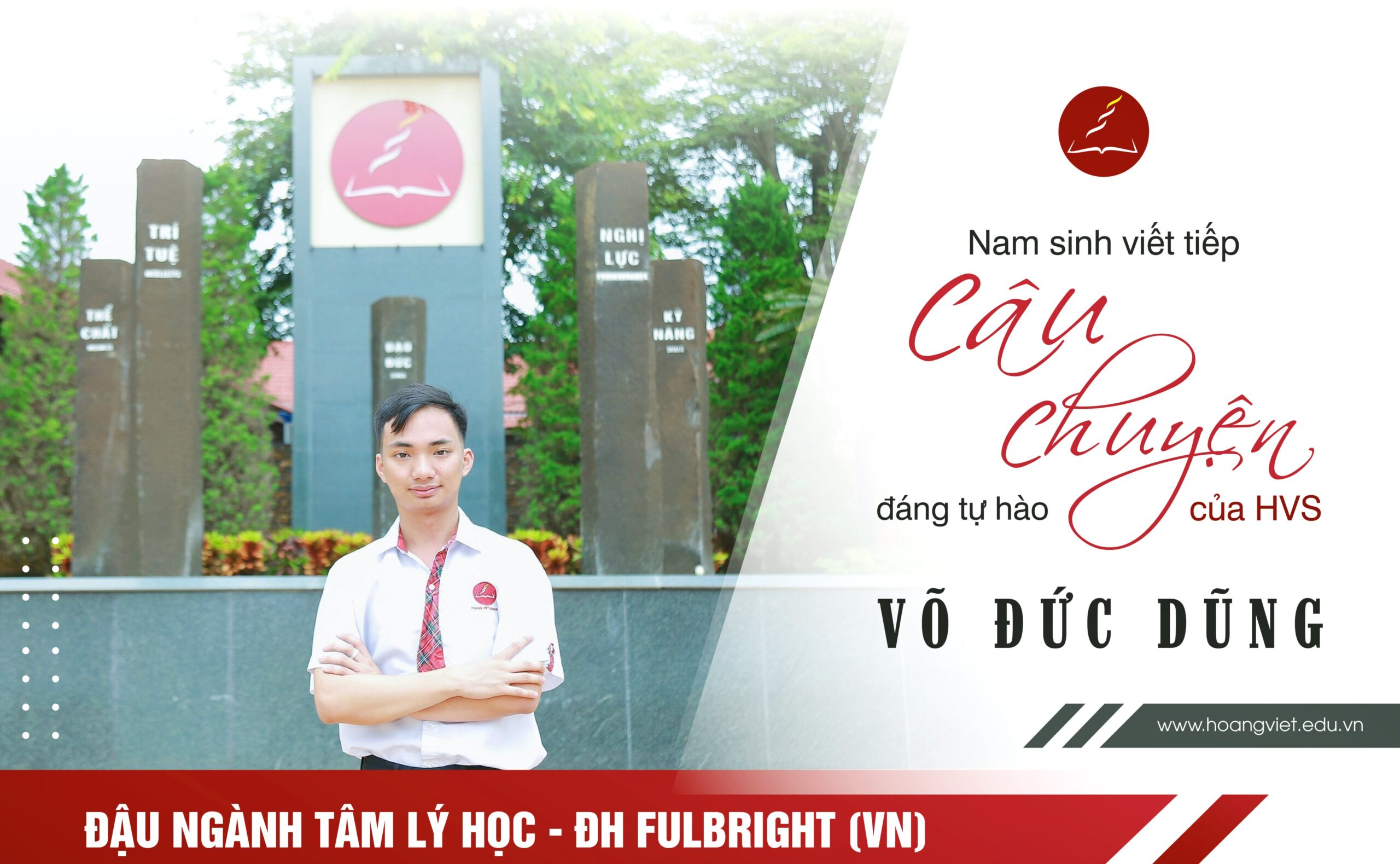 Fulbright là trường đại học độc lập, không vì lợi nhuận được sự tài trợ của chính phủ Mỹ và là trường Đại học ở Việt Nam tiên phong áp dụng mô hình giáo dục khai phóng, mang nhiều nét đồng điệu với Trường Hoàng Việt. Đậu vào Fulbright là một niềm vinh dự lớn và minh chứng cho quá trình nỗ lực không ngừng nghỉ trong học tập – rèn luyện của Đức Dũng.
